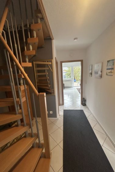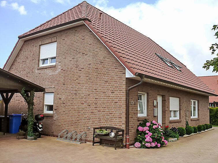 Schönes Doppelhaus "Reissmann". Am Ortsrand, in einem Wohnquartier, 6 km vom Meer, 6 km vom Strand, in einer Sackgasse. Im Hause: Zentralheizung. Parkplatz beim Haus. Supermarkt 650 m, Restaurant 350 m, Bäckerei 600 m, Fußgängerzone 1.2 km, Bushaltestelle 600 m, Bahnstation "Norden" 1 km, Sandstrand 6 km, Freibad 10 km, Hallenbad 3 km. Golfplatz (18 Loch) 4.5 km, Tennishalle 4 km.