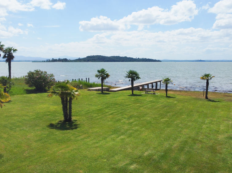 Moderne, comfortabel chalet "La Spiaggia", vrijstaand, gerenoveerd in 2024. 2 km van het centrum van San Feliciano, 10 m van het meer, directe toegang tot het strand. Voor alleengebruik: tuin 2.500 m2. Privé-strand, tuinmeubelen, parkeerplaats op het terrein. Levensmiddelenwinkel 1 km, supermarkt 1 km, restaurant 1 km, bar 1 km, bushalte 270 m, treinstation "Magione" 7 km, veerboot 2 km. Jachthaven 1 km. Attracties in de buurt: Passignano Sul Trasimeno 12 km, Castiglione Del Lago 23 km, Perugia 26 km, Cortona 32 km, Assisi 50 km. Auto noodzakelijk. De eigenaar accepteert geen jeugdgroepen.