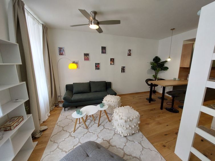 "Premium Apartment MariaHilf 1", appartement 1-kamer 42 m2 op de 2e verdieping. Het objekt is geschikt voor 4 volwassenen. Ruim en licht, volledig gerenoveerd in 2023, zeer comfortabel en modern ingericht: hal. Open woon-/slaapkamer met 1 x 1 stapelbedden (180 cm, lengte 190 cm), 1 uitschuifbaar bed (2 pers.), Kabel-TV, Flatscreen TV, radio, CD-speler en DVD. Open keuken in de hal (4-pits kookplaat, afwasmachine, broodrooster, waterkoker, elektrische koffiemachine). Bad/WC. Verwarming. Houten vloeren. Ter beschikking: wasmachine, strijkijzer, kinderbed. Internet (WiFi, gratis). Niet rokers woning.