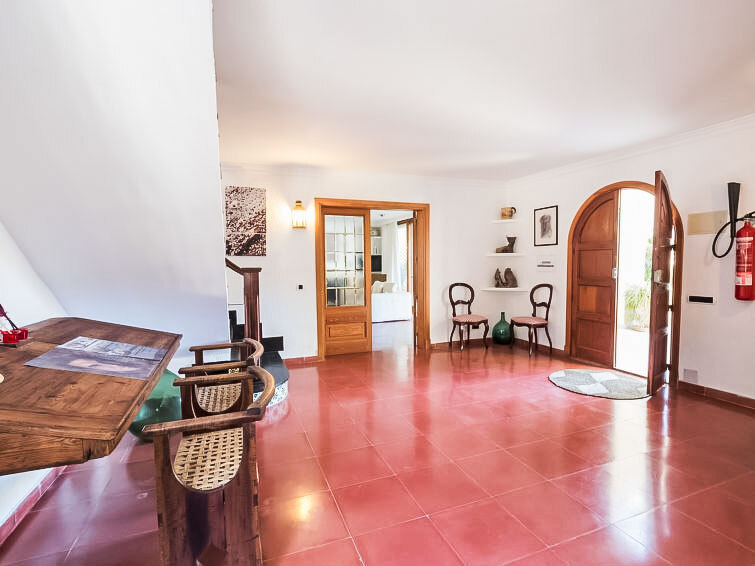 "Santa Ponça", villa 7-kamers 300 m2 op 3 verdiepingen. Het objekt is geschikt voor 8 volwassenen. Ruim, doelmatig en gezellig ingericht: salon met open haard, Sat-TV en air-conditioning. Uitgang naar het terras. Eetkamer. Keuken (4-pits kookplaat, oven, afwasmachine, broodrooster, waterkoker, magnetron, elektrische koffiemachine). Aparte WC. Elektrische verwarming. Souterrain: 1 kamer met 2 bedden (90 cm, lengte 200 cm), air-conditioning. 1 kamer met 2 bedden (90 cm, lengte 200 cm). Bad/WC. Elektrische verwarming. Bovenverdieping: salon met Sat-TV. Uitgang naar het terras. 1 kamer met 1 2-pers bed (200 cm, lengte 200 cm), douche/bidet/WC en air-conditioning. Uitgang naar het terras. 1 kamer met 2 bedden (90 cm, lengte 190 cm). Bad/bidet/WC. Elektrische verwarming. Terras 25 m2, terras 20 m2. Terrasmeubelen, barbecue, ligstoelen (8), loggia. Op het zwembad en de tuin. Ter beschikking: wasmachine, strijkijzer, kinderstoel, kinderbed tot 2 jaar, haardroger. Internet (WiFi, gratis). Parkeerplaats (omheind, 3 Auto's). Geschikt voor families. Brandblusser. ET2440 // Reg. Nr.: ESFCTU0000070210004828110000000000000000000000ET24401