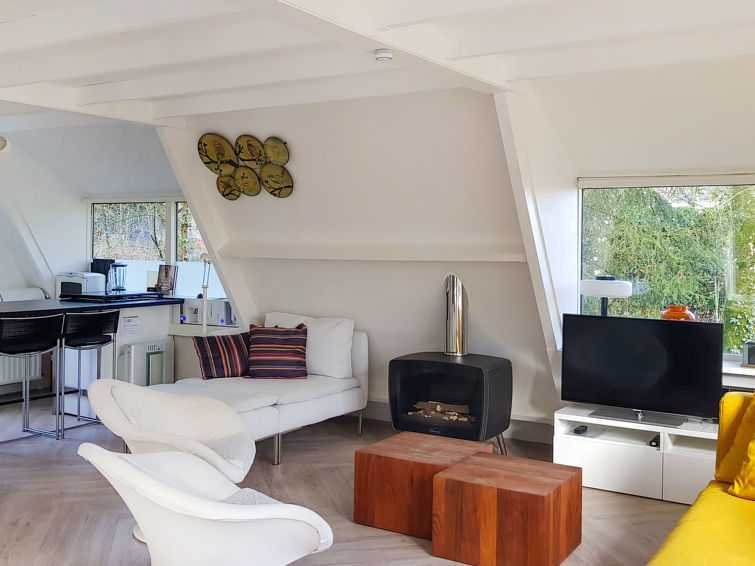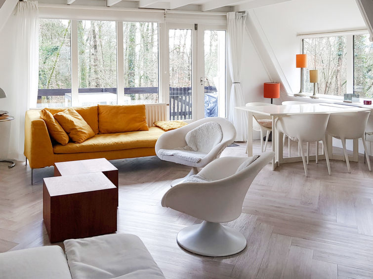 "Frui Cotidie", 3-Zimmer-Haus 75 m2 auf 2 Stockwerken. Abgeschrägt, komfortabel eingerichtet: Wohn-/Esszimmer mit Esstisch, Flachbildschirm, CD und DVD. Ausgang zum Balkon, zur Terrasse. Offene Küche (4 Kochplatten, Geschirrspüler, Mikrowelle). Dusche/WC. Heizung. Obergeschoss: (steile Treppe) 1 abgeschrägtes Doppelzimmer mit 2 Betten (90 cm, Länge 200 cm). 1 abgeschrägtes Doppelzimmer mit 1 Doppelbett (1 x 160 cm, Länge 200 cm). Balkon Terrasse. Terrassenmöbel, Balkonmöbel. Sicht auf den Wald. Zur Verfügung: Kinderhochstuhl, Babybett, Haartrockner. Internet (Wireless LAN, gratis). Blu-Ray Player, iPod docking station. Parkplatz (2 Autos) beim Haus. Bitte beachten: Nichtraucher-Haus. Rauchmelder. Das Haus hat einen Gaskamin.