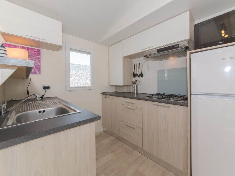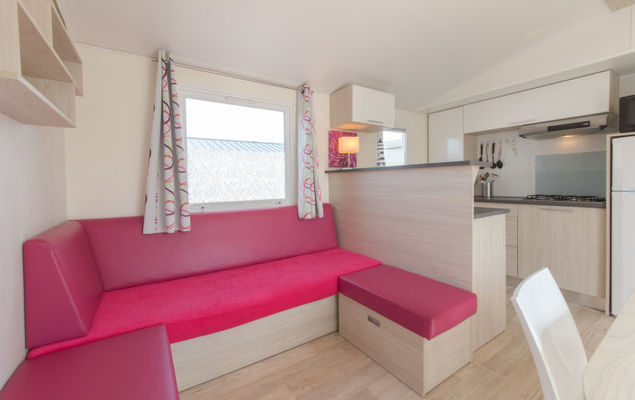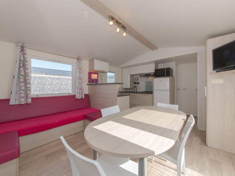 "Kerlinga 2137", 4-Zimmer-Mobilheim 36 m2. Einfach und zweckmässig eingerichtet: Wohn-/Esszimmer mit Esstisch, sep. WC, TV, Digital-TV und Internationale TV-Sender (Flachbildschirm), E-Heizung. 1 Doppelzimmer mit 1 Doppelbett (140 cm, Länge 200 cm). 2 Zimmer, jedes Zimmer mit 2 Betten (80 cm, Länge 190 cm), E-Heizung. Offene Küche (Geschirrspüler, Gasherd, 4 Flammen, Mikrowelle, elektrische Kaffeemaschine). Dusche. Garten 18 m2. Terrassenmöbel. Zur Verfügung: Haartrockner. Internet (Wireless LAN, gratis). Parkplatz (extra, 1 Auto). Bitte beachten: Nichtraucher-Haus. 1 kleines Haustier/Hund erlaubt. Rauchmelder, Feuerlöscher. Flexibilität bei der Bettenaufteilung: Es stehen mehr Schlafmöglichkeiten zur Verfügung als die maximal zugelassene Personenzahl, diese darf dennoch nicht überschritten werden.