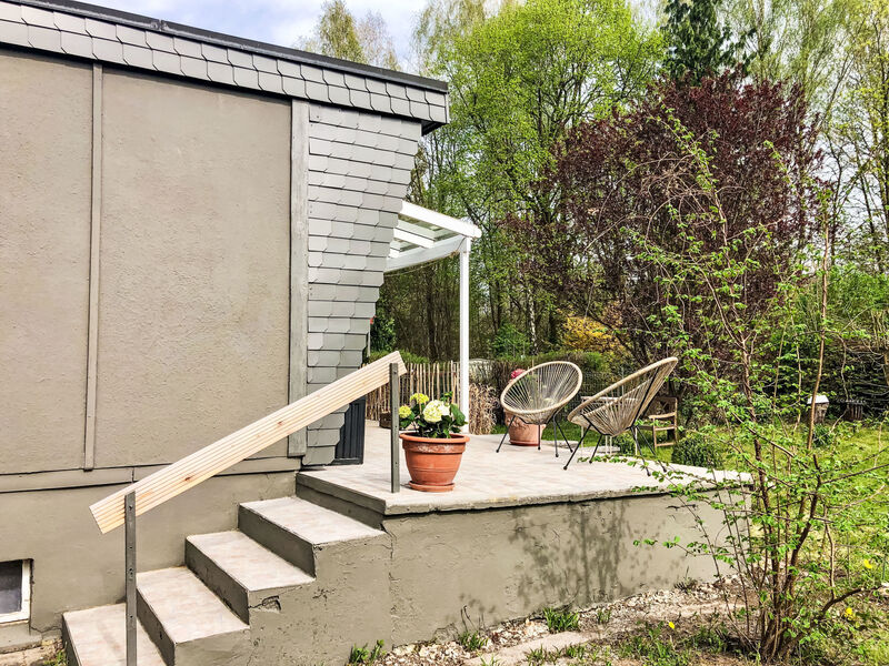 "Alva", 2-Zimmer-Bungalow 26 m2, im Erdgeschoss. Hell, zweckmässig und gemütlich eingerichtet: Wohn-/Esszimmer mit Schwedenofen, Essecke und Kabel-TV (Flachbildschirm). Ausgang zur Terrasse. 1 Zimmer mit Schiebetür mit 1 Doppelbett (140 cm, Länge 200 cm). Kleine Kochnische (4 Kochplatten, Mini-Backofen, Backofen, Toaster, Wasserkocher, elektrische Kaffeemaschine). Dusche/WC. Boiler. Grosse Terrasse 15 m2. Terrassenmöbel, Gartengrill, Liegestühle (1). Schöne Sicht auf den Wald. Zur Verfügung: Haartrockner, Holz (gratis). Parkplatz. Bitte beachten: Kühlschrank ohne Gefrierfach, Nichtraucher-Unterkunft. Maximal 1 Haustier/Hund erlaubt. Rauchmelder.