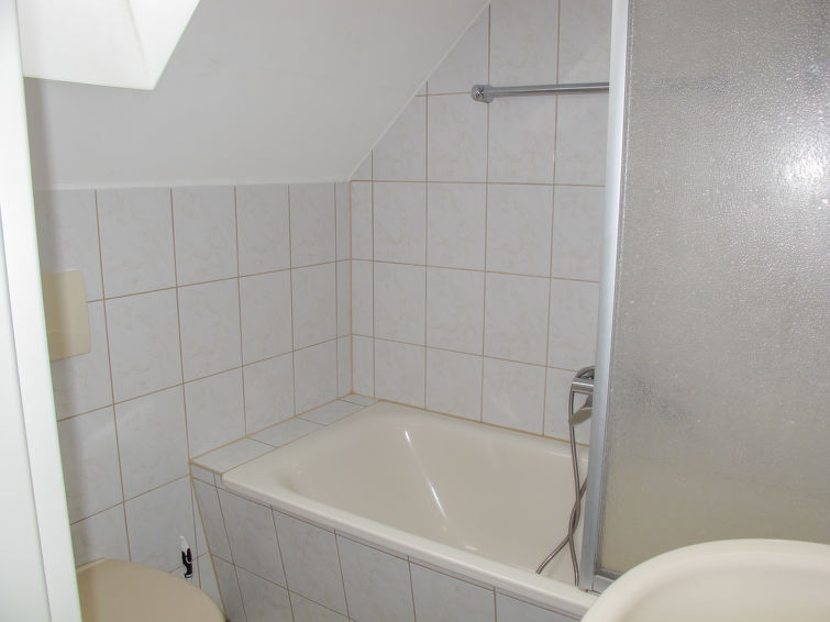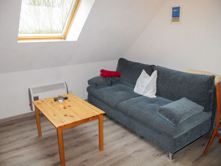 1-Zimmer-Wohnung 24 m2 im 2. Stock. Abgeschrägtes Wohn-/Schlafzimmer mit 1 Doppelbett (180 cm, Länge 200 cm), Sat-TV (Flachbildschirm), CD. Kochnische (2 Kochplatten, elektrische Kaffeemaschine). Bad/Dusche/WC. E-Heizung. Zur Verfügung: Internet (Wireless LAN, gratis). Bitte beachten: Nichtraucher-Unterkunft. Rauchmelder.