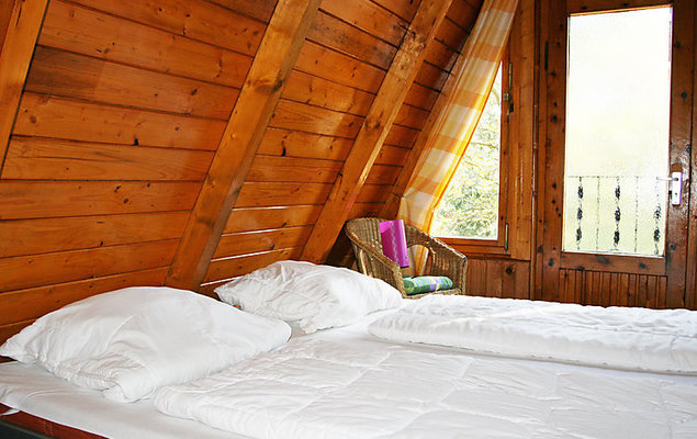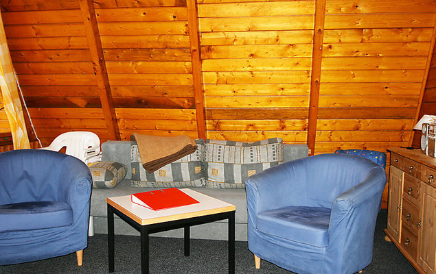 3-Zimmer-Haus 65 m2 auf 2 Stockwerken, im Erdgeschoss. Abgeschrägt: Wohn-/Esszimmer mit 1 Diwanbett, Kabel-TV und Stereoanlage. Ausgang zur Terrasse. Kleine Küche (4 Kochplatten, Backofen, Mikrowelle, elektrische Kaffeemaschine). Dusche/WC. Obergeschoss: (steile Treppe) 1 abgeschrägtes Zimmer mit 2 Betten. 1 abgeschrägtes Doppelzimmer. E-Heizung. Terrasse teilweise überdacht. Sitzplatz. Zur Verfügung: Telefon (extra). Internet (Wireless LAN, gratis). Bitte beachten: Nichtraucher-Haus. Rauchmelder. Maximalbelegung: 5 Personen (ein Baby oder Kleinkind als 6. Person ist NICHT möglich).