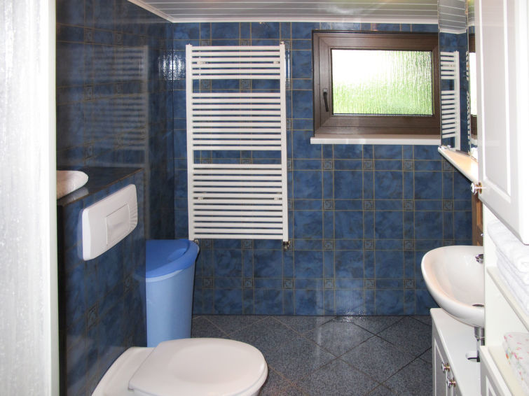 4-Zimmer-Haus 68 m2. Gemütlich eingerichtet: Wohnzimmer, Deckenhöhe 210 cm mit Schwedenofen, Sat-TV, Radio und CD. Ausgang zur Terrasse. 1 Zimmer mit 1 franz. Bett (160 cm, Länge 200 cm). 1 kleines Zimmer mit 1 x 2 Etagenbetten. 1 kleines Zimmer mit 1 Bett. Offene Küche (Backofen, Geschirrspüler, 4 Glaskeramikherd Platten, Toaster, Mikrowelle, Tiefkühler, elektrische Kaffeemaschine) mit Esstisch. Dusche/WC. Ölheizung. Parkettböden. Zur Verfügung: Holz (extra). Bitte beachten: Rauchmelder, Feuerlöscher.
