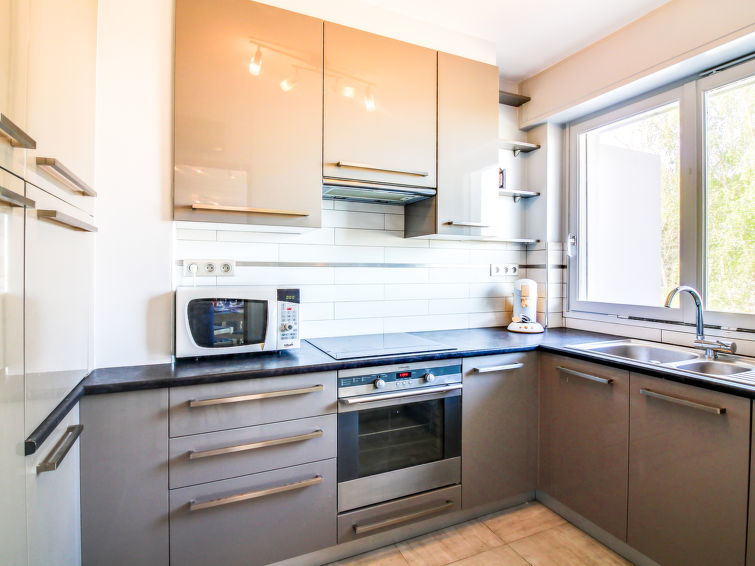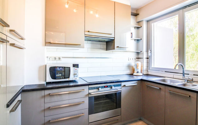 2-Zimmer-Wohnung 56 m2 im 1. Stock. Renoviert im Jahre 2017, zweckmässig und komfortabel eingerichtet: Wohn-/Esszimmer mit 1 Diwanbett (140 cm, Länge 190 cm), TV (Flachbildschirm). Ausgang zum Balkon. 1 Zimmer mit 1 franz. Bett (160 cm, Länge 190 cm). Ausgang zum Balkon. Küche (Backofen, Geschirrspüler, 3 Induktionskochplatten, Toaster, Mikrowelle, elektrische Kaffeemaschine). Dusche, sep. WC. 2 Balkone, Nordlage und Westlage. Balkonmöbel. Sicht auf das Meer. Zur Verfügung: Waschmaschine, Wäschetrockner. Internet (Wireless LAN, gratis). Parkplatz. Bitte beachten: Nichtraucher-Unterkunft. Rauchmelder.