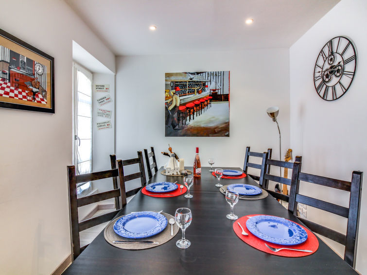 2-Zimmer-Wohnung 75 m2 auf 2 Stockwerken, im Erdgeschoss. Schön und geschmackvoll eingerichtet: Esszimmer mit sep. WC. Wohnzimmer mit 1 Doppeldiwanbett (1 x 160 cm, Länge 190 cm), Waschbecken, Dusche und TV (Flachbildschirm). Ausgang zur Terrasse. Offene Küche (Backofen, Geschirrspüler, 4 Glaskeramikherd Platten, Wasserkocher, Mikrowelle, elektrische Kaffeemaschine). Unteres Geschoss: 1 Zimmer mit 1 Diwanbett (120 cm, Länge 190 cm), 1 Doppelbett (2 x 90 cm, Länge 190 cm) mit Bad, sep. WC und Doppelwaschbecken. Terrasse 20 m2. Terrassenmöbel. Zur Verfügung: Waschmaschine. Internet (Wireless LAN, extra). Bitte beachten: Nichtraucher-Unterkunft. Rauchmelder.