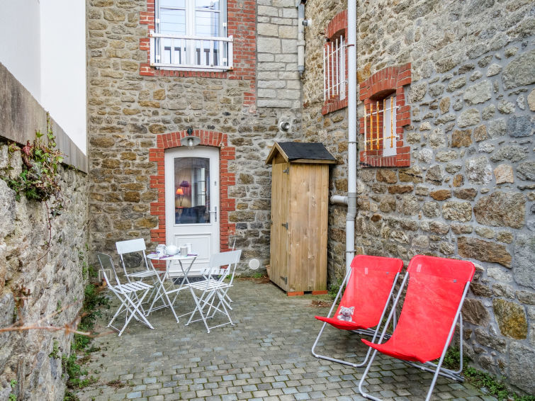 Schönes Reihenhaus "Petit Acacia", renoviert. Im Ortsteil Saint Enogat, ruhige Lage, 300 m vom Meer, 300 m vom Strand. Öffentliche Parkplätze auf der Strasse. Einkaufsgeschäft, Restaurant 700 m, Sandstrand "Saint Enogat" 300 m, Freibad 1.4 km, Thermalbad 1 km. Golfplatz 6.2 km, Surfschule 350 m, Reitstall 1.5 km, Wanderwege ab Haus 300 m. Nahe gelegene Sehenswürdigkeiten: Le Grand Aquarium de Saint Malo 9.2 km, Saint Malo 12.5 km, Dinan 22.7 km, Cap Fréhel/Fort La Latte 35.6 km, Cancale 22.9 km, Le Mont Saint Michel 60 km. Das Anwesen hat einen Hof von 30 m², mit Gartenmöbeln für 4 Personen.