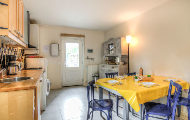 3-Zimmer-Reihenhaus 60 m2 auf 2 Stockwerken. Wohn-/Esszimmer mit TV (Flachbildschirm). Ausgang zur Terrasse. Offene Küche (4 Kochplatten, Backofen, Geschirrspüler, Toaster, Wasserkocher, Mikrowelle). Dusche/WC. Obergeschoss: 1 Zimmer mit 1 franz. Bett (1 x 140 cm, Länge 190 cm). 1 Zimmer mit 1 Bett und 1 Ausziehbett (2 Pers.). Dusche/WC. G-Heizung. Zur Verfügung: Waschmaschine, Kinderhochstuhl, Babybett bis 2 Jahre. Internet (Wireless LAN, gratis). Bitte beachten: Nichtraucher-Haus. 1 kleines Haustier/Hund erlaubt. Rauchmelder.