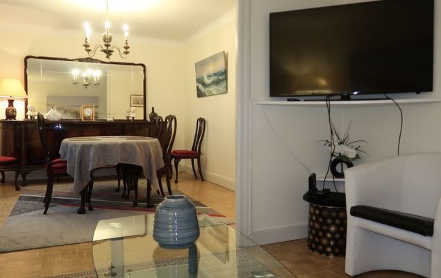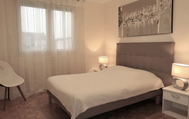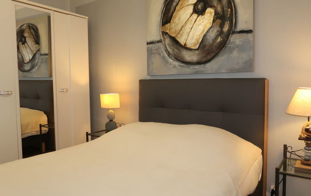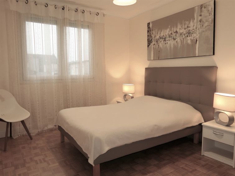 "Les Glénans (CCN113)", 3-Zimmer-Wohnung 65 m2 im 1. Stock. Renoviert im Jahre 2018, komfortabel und stilvoll eingerichtet: Wohn-/Esszimmer mit Esstisch, TV, CD und elektrischem Rollladen. Ausgang zum Balkon. 2 Zimmer, jedes Zimmer mit 1 franz. Bett (140 cm, Länge 190 cm), elektrischem Rollladen. Küche (Backofen, 3 Induktionskochplatten, Toaster, Wasserkocher, Mikrowelle, Tiefkühler, elektrische Kaffeemaschine). Dusche, sep. WC. G-Heizung. Parkettböden. Abstellkammer. Zur Verfügung: Waschmaschine, Wäschetrockner, Bügeleisen. Internet (Wireless LAN, gratis). Bitte beachten: Nichtraucher-Unterkunft. Rauchmelder, Feuerlöscher.