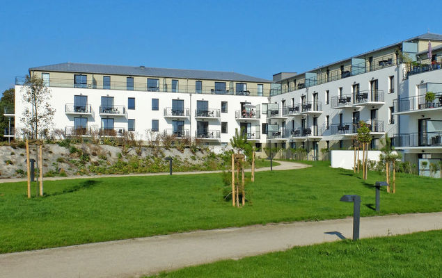 Ferienanlage "Thalasso Concarneau", auf 3 Stockwerken, Baujahr 2013. 51 Wohnungen in der Residenz. 2 km vom Zentrum von Concarneau, 22 km vom Zentrum von Quimper, 50 m vom Meer, Strasse zu überqueren. Zur Mitbenutzung: Park 3 ha mit Rasen und Bäumen, Schwimmbad beheizt, eingezäunt (14 x 7 m, saisonale Verfügbarkeit: 15.Jun.-15.Sep.). In der Anlage: Empfang, Aufenthaltsraum mit TV, Fahrstuhl. Parkplatz auf dem Grundstück. Supermarkt 2.5 km, Sandstrand "Sables Blancs" 50 m. Golfplatz (18 Loch) 6.3 km, Reitstall 3.6 km. Bitte beachten: Das Foto ist nur ein Hausbeispiel. Die Mietobjekte können sich in Wohnfläche, Raumaufteilung, Ausstattung und Einrichtung unterscheiden. Die Residenz liegt zusammen mit dem Spa Marin Resort mit Thalassocenter und dem Restaurant 'Le Domaine' in einem Park.