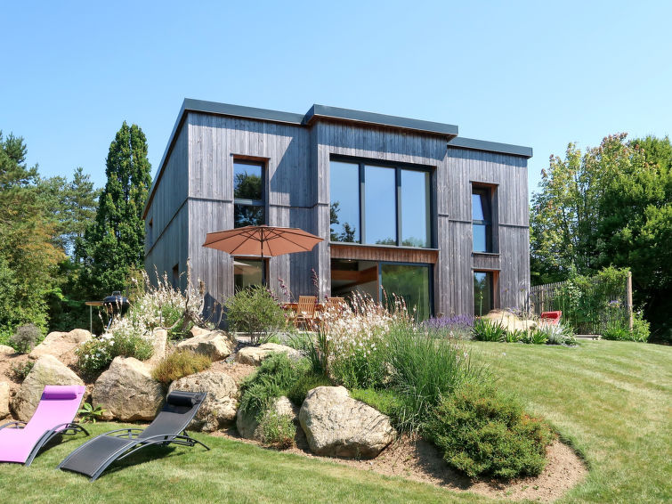 Schönes, komfortables Holzhaus "Ty Coat". 1.7 km vom Zentrum von La Forêt-Fouesnant, 5 km vom Zentrum von Concarneau, 13 km vom Zentrum von Quimper, ruhige Lage, 2.8 km vom Meer, 3 km vom Strand, im Grünen. Zur Mitbenutzung: Grundstück 2 ha, Park, Garten (nicht eingezäunt) mit Rasen und Bäumen, Teich. Zur Alleinbenutzung: Grundstück 2'000 m2, Park, gepflegter Garten Rasen und Bäumen. Abstellraum vorhanden. Parkplatz (für 3 Autos) auf dem Grundstück. Einkaufsgeschäft 2 km, Lebensmittelgeschäft 2 km, Supermarkt 4.5 km, Einkaufszentrum 6 km, Restaurant 1.7 km, Bäckerei 1.6 km, Sandstrand "Plage de Kerleven" 3 km, Thermalbad "Thalasso Benodet" 14 km. Sporthafen 3.5 km, Golfplatz 2 km, Surfschule 3.7 km, Segelschule 3.7 km, Wanderwege ab Haus 3 km. Nahe gelegene Sehenswürdigkeiten: Concarneau 7 km, Embarcadère Iles des Glénan 7 km, Bénodet 14 km, Quimper 14 km, Pointe de Trévignon 20 km, Pont-Aven 20 km. Bitte beachten: Der Besitzer wohnt auf dem gleichen Grundstück. Hauptstrasse 50 m vom Haus.