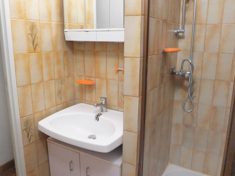 2-Zimmer-Wohnung 28 m2 im 1. Stock. Renoviert im Jahre 2017: Wohn-/Esszimmer mit 1 Doppeldiwanbett und TV (Flachbildschirm). Ausgang zur Loggia. 1 Zimmer mit 1 franz. Bett (140 cm). Schlafnische mit 1 Bett. Kochnische (2 Kochplatten, Mini-Backofen, Mikrowelle). Dusche, sep. WC. E-Heizung. Südwestlage. Balkonmöbel, Loggia. Zur Verfügung: Internet (Wireless LAN, extra). Parkplatz. Bitte beachten: Rauchmelder.