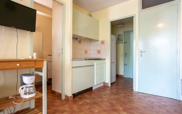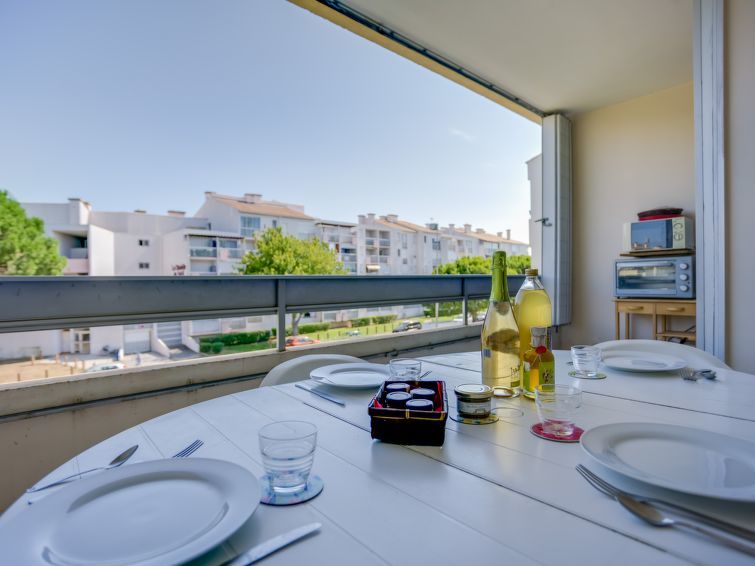 Residenz "Floralies I". Im Ortsteil le Palais de la Mer, 450 m vom Meer, 400 m vom Strand. Parkplatz. Einkaufsgeschäft, Supermarkt 50 m, Einkaufszentrum 300 m, Restaurant 50 m, Sandstrand 400 m, Hallenbad 1.1 km, Thermalbad "Thalazur Les Bains de Camargue" 4 km. Reitstall 2.5 km. Nahe gelegene Sehenswürdigkeiten: Seaquarium 350 m, Casino Flamingo 800 m, Aigues-Mortes 8 km, La Grande-Motte 13 km, Les Saintes-Maries-de-la-Mer 37 km, Nîmes 52 km. Wandergebiete: Réserve Naturelle de Camargue. Bitte beachten: Flugplatz 25 km vom Haus.