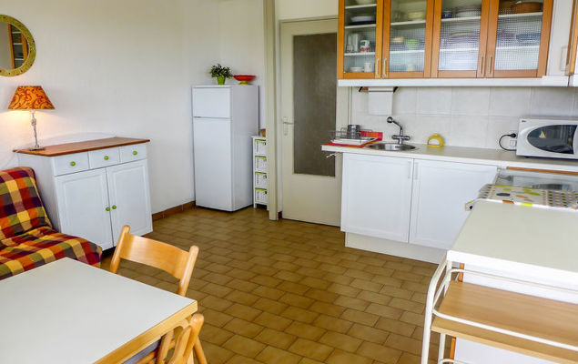 2-Zimmer-Wohnung 34 m2 im 6. Stock. Geräumig und hell: Wohn-/Esszimmer mit 1 Diwanbett (90 cm, Länge 190 cm), 1 Doppeldiwanbett (140 cm, Länge 190 cm), TV (Flachbildschirm), Stereoanlage und DVD. 1 Zimmer mit 1 franz. Bett (140 cm, Länge 190 cm). Kochnische (4 Kochplatten, Backofen, Geschirrspüler, Toaster, Wasserkocher, Mikrowelle, Tiefkühler, elektrische Kaffeemaschine). Bad, sep. WC. Heizung, Klimaanlage. Terrasse 20 m2, überdacht, Westlage. Terrassenmöbel. Panoramasicht auf die Landschaft. Zur Verfügung: Waschmaschine. Internet (Wireless LAN, extra). Parkplatz. Bitte beachten: 1 Haustier/Hund erlaubt. Rauchmelder.