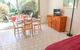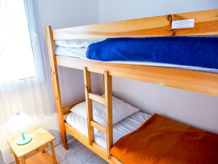 3-Zimmer-Wohnung 40 m2, im Erdgeschoss. Wohn-/Esszimmer mit 1 Doppeldiwanbett (140 cm), TV (Flachbildschirm). Ausgang zur Terrasse. 1 Zimmer mit 1 franz. Bett (140 cm, Länge 190 cm). 1 kleines Kinderzimmer mit 1 x 2 Etagenbetten (70 cm, Länge 190 cm). Kochnische (3 Glaskeramikherd Platten, Toaster, Wasserkocher, Mikrowelle, Tiefkühler, elektrische Kaffeemaschine). Bad, sep. WC. E-Heizung. Terrasse 8 m2, Südlage, Gartensitzplatz 6 m2. Terrassenmöbel. Sicht auf das Schwimmbad und den Garten. Zur Verfügung: Internet (Wireless LAN, extra). Parkplatz. Bitte beachten: 1 Haustier/Hund erlaubt. Rauchmelder.
