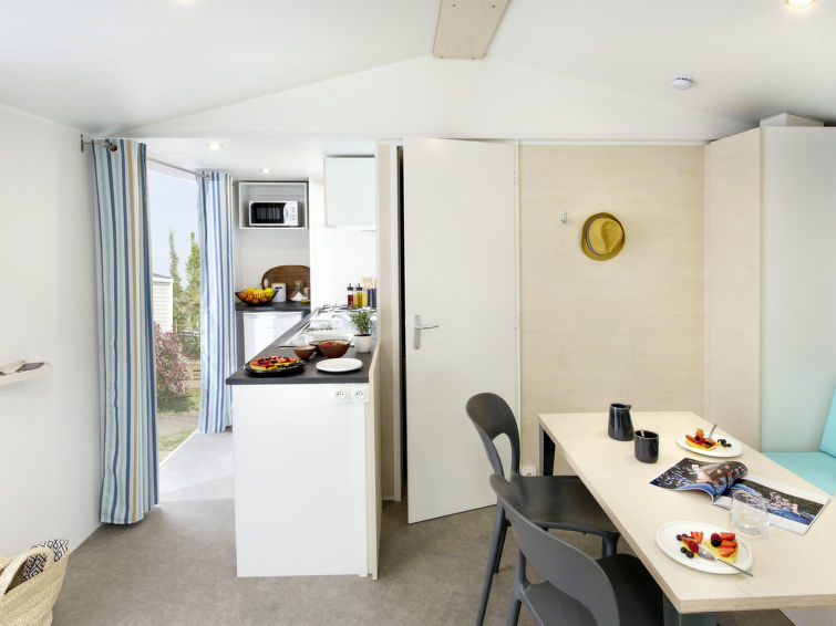 Ferienanlage "Camping La Plage". 133 Häuser in der Residenz. 200 m vom Zentrum, 200 m vom Meer. Zur Mitbenutzung: Grundstück, Bäumen, Schwimmbad (24 x 8 m, 152 cm tief, saisonale Verfügbarkeit: 15.Apr.-17.Sep.). Kinderbecken, Boccia, Kinderspielplatz. Zur Alleinbenutzung: Grundstück 90 m2. Im Hause: Empfang, Waschmaschine, Wäschetrockner (zur Mitbenutzung, extra). Parkplatz auf dem Grundstück. Einkaufsgeschäft 50 m, Sandstrand 200 m. Der Besitzer akzeptiert keine Gruppen. Bitte beachten: Das Foto ist nur ein Hausbeispiel. Die Mietobjekte können sich in Wohnfläche, Raumaufteilung, Ausstattung und Einrichtung unterscheiden.