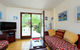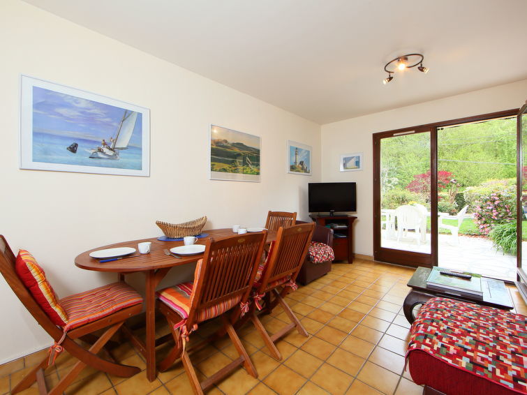 3-Zimmer-Reihenhaus 40 m2 auf 2 Stockwerken. Wohn-/Esszimmer mit 1 Diwanbett (130 cm, Länge 190 cm), TV (Flachbildschirm). Ausgang zum Garten, zur Terrasse. Offene Küche (4 Kochplatten, Mini-Backofen, Toaster, Wasserkocher, Mikrowelle, Tiefkühler, elektrische Kaffeemaschine). Dusche/WC. Obergeschoss: 1 Zimmer mit 1 franz. Bett (2 x 90 cm, Länge 190 cm), TV (Flachbildschirm). 1 Zimmer mit 1 Bett (90 cm, Länge 190 cm). E-Heizung. Garten 300 m2. Terrassenmöbel, Liegestühle (2). Zur Verfügung: Waschmaschine, Bügeleisen. Internet (Wireless LAN, extra). Parkplatz Nr. 37. Bitte beachten: Maximal 1 Haustier/Hund erlaubt. Rauchmelder. BEACHTEN SIE: Bach ohne Schutzvorrichtung in der Nähe des Gartens.