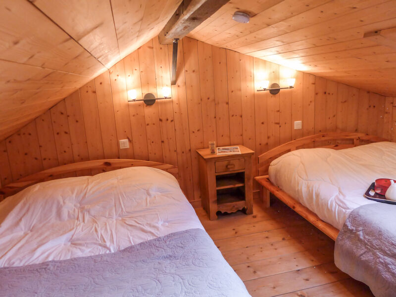 2-Zimmer-Haus 50 m2 auf 3 Stockwerken. Wohn-/Esszimmer mit TV. Kochnische (4 Kochplatten, Backofen, Geschirrspüler, Wasserkocher, elektrische Kaffeemaschine). Sep. WC. Unteres Geschoss: 1 Zimmer mit 1 franz. Bett (140 cm, Länge 190 cm). Bad. Obergeschoss: (steile Treppe) abgeschrägte Galerie mit Dachfenster mit 2 franz. Betten (2 x 140 cm, Länge 190 cm). E-Heizung. Terrasse, Südwestlage. Terrassenmöbel. Schöne Sicht auf die Berge. Zur Verfügung: Internet (Wireless LAN, extra). Bitte beachten: kein Parkplatz. Maximal 1 Haustier/Hund erlaubt. TV nur FR. Rauchmelder. Anstelle eines abgeschlossenen Schlafzimmers befinden sich manche Schlafplätze in einem offenen Bereich (Galerie, Nische etc.).
