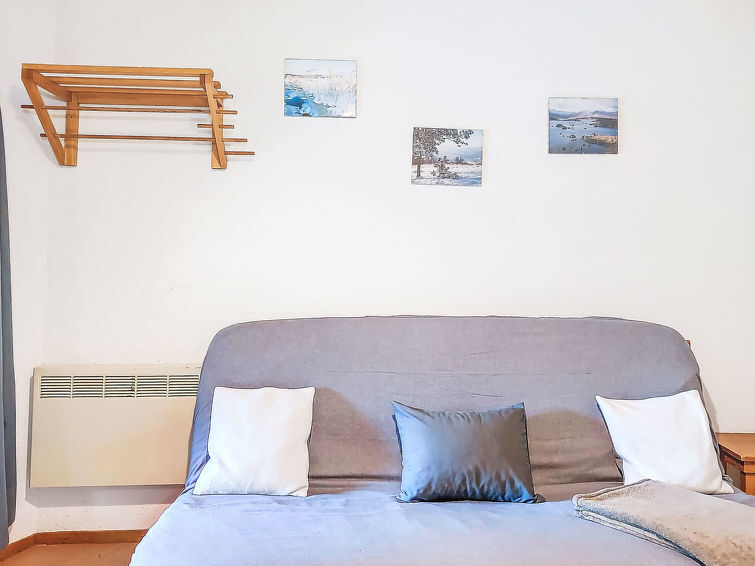 2-Zimmer-Wohnung 32 m2 im 4. Stock. Wohn-/Esszimmer mit 1 Doppeldiwanbett und TV. Ausgang zum Balkon. 1 Zimmer mit 1 franz. Bett. Eingang mit 1 x 2 Etagenbetten. Kochnische (2 Kochplatten, Backofen, Toaster, Wasserkocher, elektrische Kaffeemaschine, Kombinationsmikrowelle). Bad, sep. WC. E-Heizung. Balkon 3 m2, Südwestlage. Balkonmöbel. Sicht auf die Berge. Zur Verfügung: Babybett. Internet (WLAN, extra). Bitte beachten: TV nur FR. Rauchmelder. Gebäude F. Gerüste werden an der Fassade des Gebäudes im August 2023 vorhanden sein. 74085 000459 OM