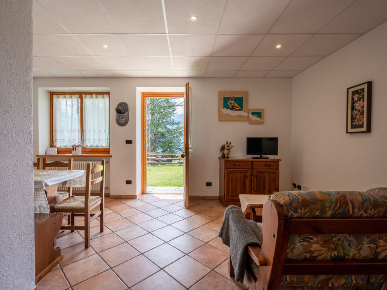 "Renard", 3-Zimmer-Wohnung 75 m2, im Erdgeschoss. Zweckmässig und komfortabel eingerichtet: Wohnzimmer mit TV (Flachbildschirm). Ausgang zum Garten. 1 Doppelzimmer. 1 Zimmer mit 2 Betten. Kochnische (4 Induktionskochplatten, Wasserkocher, Mikrowelle, Tiefkühler) mit Esstisch und Essecke. Dusche/Bidet/WC. Terrassenmöbel. Sicht auf die Berge, das Tal und den Garten. Zur Verfügung: Haartrockner. Internet (Wireless LAN, gratis). Geeignet für Familien. IT007066B4QRQIZEY9