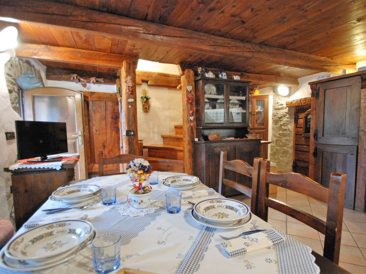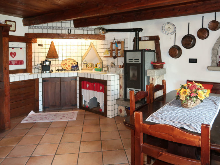 4-Zimmer-Haus 90 m2 auf 4 Stockwerken. Teilweise abgeschrägt, komfortabel und mit viel Holz eingerichtet: Wohn-/Esszimmer mit Esstisch und TV. Ausgang zum Garten. Kochnische (Backofen, Geschirrspüler, 4 Flammen, elektrische Kaffeemaschine). G-Heizung. Heizung nur verfügbar von 01.10. bis 01.05. Unteres Geschoss: kleines Wohnzimmer mit offenem Kamin (nur Deko). Obergeschoss: 1 Doppelzimmer. Ausgang zum Balkon. Dusche/Bidet/WC. 2. Obergeschoss: 1 Zimmer mit 1 Bett und 1 franz. Bett (140 cm), Dusche/WC. Parkettboden. Garten. Terrassenmöbel, Gartengrill, Liegestühle. Panoramasicht auf die Berge und das Tal. Zur Verfügung: Waschmaschine, Bügeleisen, Kinderhochstuhl, Babybett bis 3 Jahre (extra), Haartrockner. Internet (Wireless LAN, gratis). Bitte beachten: Nichtraucher-Unterkunft. Eigener Eingang. IT007066C2N75YBUAJ
