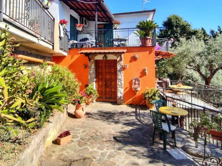 Metrano 5 km von Massa Lubrense: Rustikales Zweifamilienhaus "Candy", umgeben von Bäumen und Feldern. Ruhige, sonnige, erhöhte Lage auf einem Hügel, 5 km vom Meer, 5 km vom Strand, im Grünen. Zur Alleinbenutzung: schöner, gepflegter Garten (eingezäunt) mit Pflanzen und Blumen. Terrasse, Gartenmöbel. Im Hause: Wireless LAN. 100 m lange schmale Zufahrt (Naturweg). Treppenweg (40 Stufen) bis zum Haus. Breite der Zufahrtsstrasse: 200 cm. Parkplatz (beschränkte Anzahl). Restaurant, Bar, Bushaltestelle 500 m, Bahnstation "Sorrento" 10 km, Fähre 10 km, Kieselstrand "Marina del Cantone" 5 km. Nahe gelegene Sehenswürdigkeiten: Sorrento 12 km, Positano 18 km, Amalfi 35 km, Ischia, Capri, Napoli 60 km. Bitte beachten: Fahrzeug empfohlen. Es kann auf Anfrage ein Transfer ab Flughafen zum Ferienobjekt organisiert werden. Der Besitzer wohnt auf dem gleichen Grundstück. 1.5 km entfernt befindet sich eine Residenz, dessen Schwimmbecken die Gäste gemäss Vereinbarung benutzen können (extra).