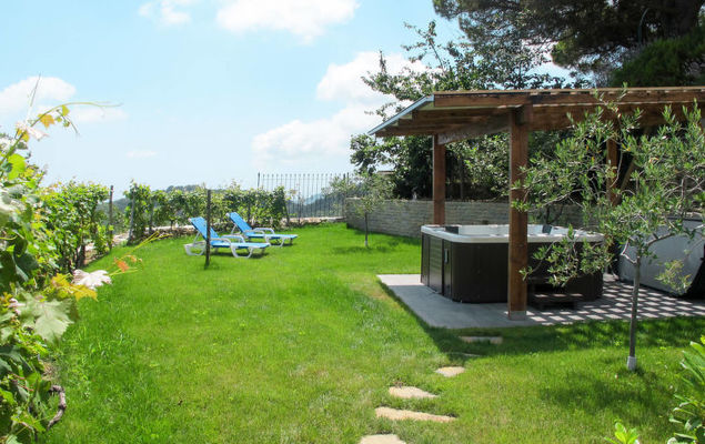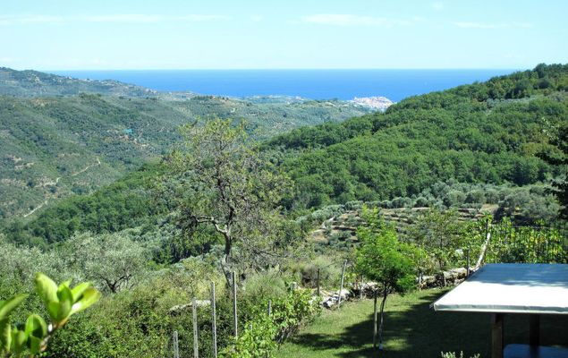 Der AGRITURISMO SAN GIUSEPPE steht in einmaliger Aussichtslage, mit Blick bis zum Meer, ca. 100 m oberhalb der Ortsmitte von Valloria. Nächste Einkaufsmöglichkeit in Molini di Prelà, 4 km. Zu den Sand-, Kiesel- und Felsstränden von Imperia 14 km. Zufahrt bis zum Dorfplatz mit Parkplätzen, von dem ein ca. 100 m langer Treppenweg (64 Stufen) zum Haus hinaufführt. Auf Wunsch Gepäcktransport durch den Besitzer vom Dorfplatz zum Haus. Alternativ Zufahrt direkt bis zum Agriturismo über 2,5 km langen, ansteigenden, teils betonierten Waldweg (nicht für Autos mit geringer Bodenfreiheit geeignet). Parkmöglichkeit auf dem Grundstück. Auf dem terrassierten Hanggrundstück wachsen Obst- und Olivenbäume, der Wohn- und Poolbereich ist mit Blumen, Sträuchern und kleinen Rasenflächen hübsch angelegt. Am schönen Panoramapool (6 x 5 m, geöffnet 9.4. - 26.11.) Terrasse mit Gartenmöbeln, Liegen und Außendusche. Sommerküche (2 Ceranfelder, Spülbecken, Kaffeemaschine, Wasserkocher, Toaster). Etwas unterhalb Gemeinschaftsfreisitz unter Bäumen mit gemauertem Grill. Im Garten Sprudelbad (2 x 2 m, € 10/30 Min., Anmeldung) für 5 Personen. Tischfußball, Tischtennisplatte, Boccia. Außenbeleuchtung. Ca. 200 m oberhalb Tennisplatz mit Kunstrasen und Flutlicht (kostenlos, Schläger und Bälle inklusive). Auf Wunsch Tennisunterricht (€ 15/Stunde, Buchung und Bezahlung am Ort). Verleih von E-Mountainbikes (€ 50/Tag), geführte Touren in den ligurischen Seealpen. Waschstation und Garage für Fahrräder. Geführte Wanderungen und Radtouren in die Berge mit Picknick (Absprache und Bezahlung am Ort). Für Gruppen stellt der Besitzer auf Wunsch ein Programm zusammen, bspw. mit Besichtigung einer Ölmühle, Weinprobe, Kochkurs, Wanderungen, Canyoning, Mountainbiken, Grillabenden, im Herbst Teilnahme an der Olivenernte und -ölpressung. In der Anlage kleiner Laden (Selbstbedienung) mit Verkauf von Wein, Grappa, Olivenöl, Pesto und Honig (je nach Saison) aus eigener Herstellung. Brötchenservice. Auf Wunsch Frühstück (€ 5, Absprache und Bezahlung am Ort). Das Restaurant auf der Dorf-Piazza, das vom Besitzer geführt wird, bietet für unsere Gäste ein mehrgängiges ligurisches Menü (€ 25 pro Person, Bestellung und Bezahlung am Ort). Jeden Montag Aperitif mit Buffet, Pizza-Abende von Dienstag bis Donnerstag (bis Pfingsten/ab Oktober nur am Wochenende geöffnet).