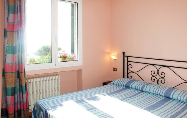 2-Zimmer-Wohnung 'Giglio', Erdgeschoss, ca. 35 m². Wohn-/Schlafraum mit Doppelbettcouch, Essplatz, Küchenzeile (4 Flammen, Backofen, Geschirrspüler, Kühlschrank, Kaffeemaschine, Wasserkocher, Toaster), Terrassenausgang. Doppelzimmer (Bett 1,60 m breit). Dusche/WC. Klimaanlage. Vor dem Eingangsbereich überdachte Terrasse (15 m²) mit Blick bis zum Meer. CITR: 008047-AGR-0005