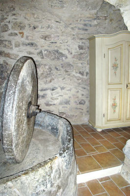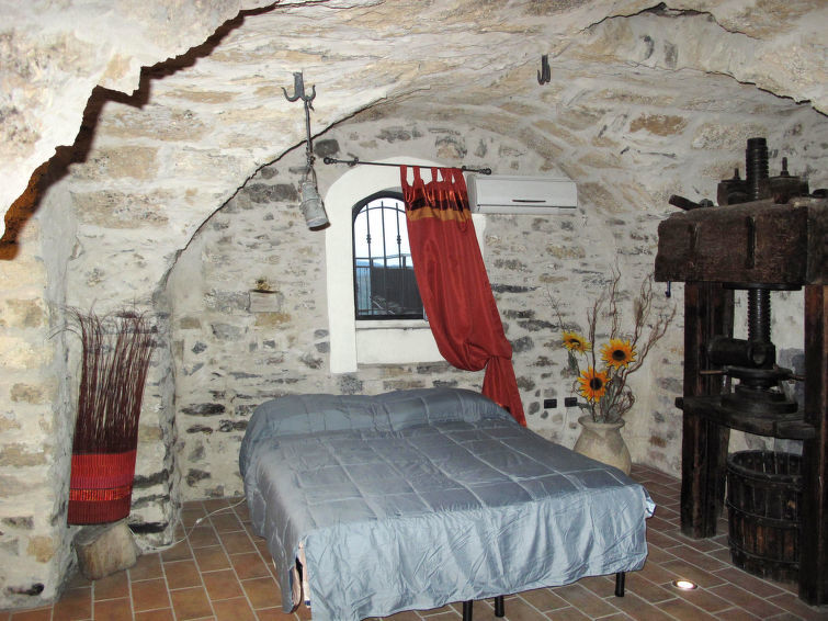 Die Ferienwohnung IL MULINO liegt in einer ehemaligen Ölmühle, in der autofreien Ortsmitte von Valloria. Nächste Einkaufsmöglichkeit in Molini di Prelà, 4 km. Zu den Fels-, Sand- und Kieselstränden von Imperia 14 km. Zufahrt bis auf ca. 30 m möglich. Öffentlicher, kostenloser Parkplatz ca. 50 m. Das Restaurant auf der Dorf-Piazza, das vom Besitzer geführt wird, bietet für unsere Gäste ein mehrgängiges ligurisches Menü (€ 25 pro Person, Bestellung und Bezahlung am Ort) und freies W-lan. Jeden Montag Aperitif mit Buffet, Pizza-Abende von Dienstag bis Donnerstag (bis Pfingsten/ab Oktober nur am Wochenende geöffnet). Auf Wunsch Frühstück- und Brötchenservice (Bestellung und Bezahlung am Ort). Die Mühle ist freundlich und rustikal im Landhausstil eingerichtet. Bei der Renovierung blieben charakteristische Bereiche der alten Mühle erhalten. So schaffen das in den Wohnraum integrierte steinerne Mühlrad und die antike Holzpresse zusammen mit alten Gewölbedecken und dicken Natursteinwänden ein außergewöhnliches Wohnambiente. Besonderheiten sind die für Valloria typischen bemalten Türen sowie der unter einer beleuchteten Glasscheibe sichtbare Felsen. Cottoböden. Sat-TV (deutsche Programme). Stereoanlage. Holzofen im Wohn-/Schlafzimmer. Brötchen-Service.