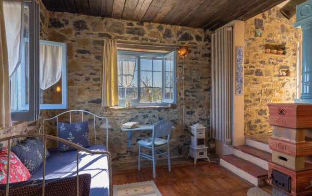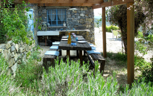 "Azzurra (PTB145)", 3-Zimmer-Haus 60 m2 auf 2 Stockwerken. Rustikal und geschmackvoll eingerichtet: Wohn-/Schlafzimmer mit 1 Bett (80 cm), TV, CD und Holzofen. Offene Küche (Backofen, Geschirrspüler, 4 Flammen, Toaster, Tiefkühler, elektrische Kaffeemaschine) mit Esstisch. Dusche/WC. Obergeschoss: (Wendeltreppe) 1 offenes Zimmer mit 1 Doppelbett (160 cm). 1 offenes Zimmer mit 1 franz. Bett (160 cm). Ausgang zur Terrasse. Dusche/WC. G-Heizung. Holzböden, Natursteinböden. Grosse Terrasse, Gartensitzplatz, Laube. Terrassenmöbel, Gartengrill, Liegestühle (5). Herrliche Fernsicht auf das Meer und die Landschaft. Zur Verfügung: Waschmaschine, Bügeleisen, Fliegengitter. CITRA: 008041-LT-0009