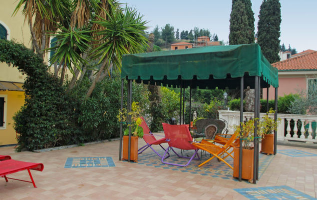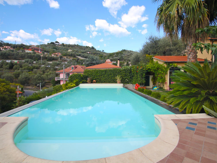 Residenz "Il Risveglio". 6 Wohnungen im Ferienhaus. 1 km vom Zentrum von Imperia Oneglia, sonnige, erhöhte Lage, 1 km vom Meer. Zur Mitbenutzung: Grundstück (eingezäunt) mit Pflanzen und Bäumen, Schwimmbad beheizt (11 x 4 m, 120 cm tief, saisonale Verfügbarkeit: 15.Mai.-30.Sep.). Aussendusche, Gartenmöbel, Parkplatz (beschränkte Anzahl) in 20 m öffentliche Parkplätze 50 m. Lebensmittelgeschäft 1 km, Restaurant 1 km, Bahnstation "Imperia" 2 km, Kieselstrand 1 km. Nahe gelegene Sehenswürdigkeiten: Imperia Porto Maurizio 5 km. Bitte beachten: Fahrzeug empfohlen. Der Besitzer wohnt auf dem gleichen Grundstück. Das Feriengut besteht aus 3 Einheiten und ist von einer Mauer umgeben, das durch ein Tor abgeschlossen ist.