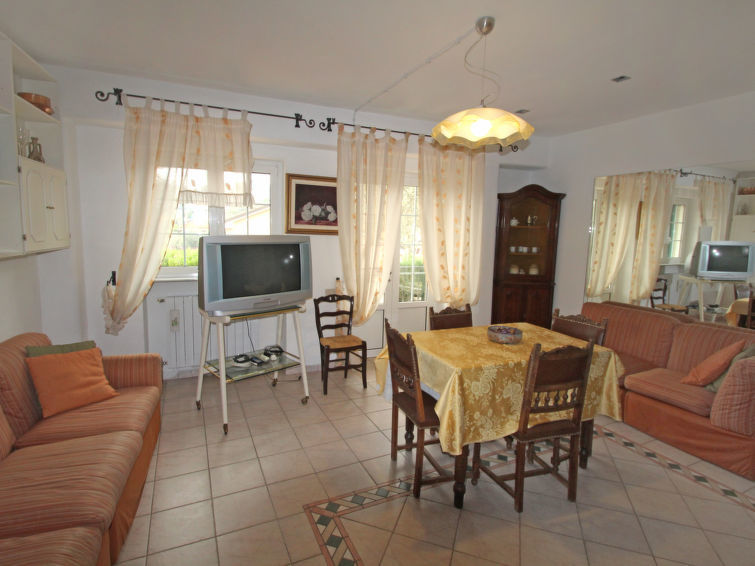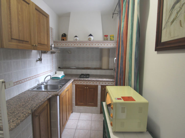 "210", 3-Zimmer-Wohnung 70 m2. Geschmackvoll eingerichtet: Eingang. Wohn-/Esszimmer mit TV. 1 Zimmer mit 2 Betten. 1 offenes Doppelzimmer, ohne Fenster. Kleine Küche (2 Kochplatten, Mikrowelle, Tiefkühler). Dusche/Bidet/WC. G-Heizung (extra). Heizung nur verfügbar von 01.11. bis 31.03. Terrasse 20 m2. Terrassenmöbel, Liegestühle (2). Zur Verfügung: Waschmaschine, Haartrockner. Internet (Wireless LAN). Vom Zweibettzimmer aus Zugang zum Bad nur über das Doppelzimmer. 008031-AGR-0008