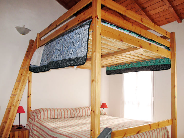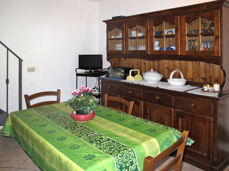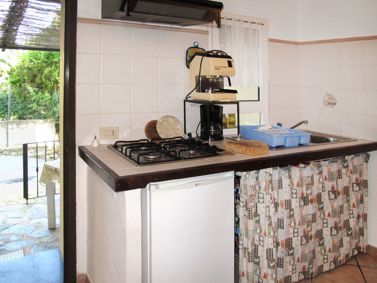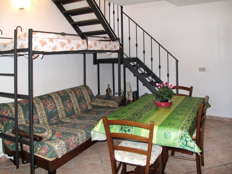 "Villetta Paola (IMP232)", 2-Zimmer-Haus 45 m2 auf 2 Stockwerken. Objekt geeignet für 3 Erwachsene. Einfach eingerichtet: Wohn-/Schlafzimmer mit 1 x 1 Etagenbetten, Esstisch und Sat-TV. Ausgang zur Terrasse. Kochnische (Mini-Backofen, 4 Flammen, Toaster, elektrische Kaffeemaschine). Obergeschoss: (steile Treppe) 1 Zimmer mit 2 x 2 Etagenbetten (160 cm). Dusche/WC. E-Heizung. Zur Verfügung: Bügeleisen, Fliegengitter, Kinderhochstuhl, Babybett. Maximal 2 Haustiere/Hunde erlaubt. Die Wand zwischen Badezimmer und Schlafzimmer reicht nicht bis zur Decke. CITRA: 008031-LT-0077