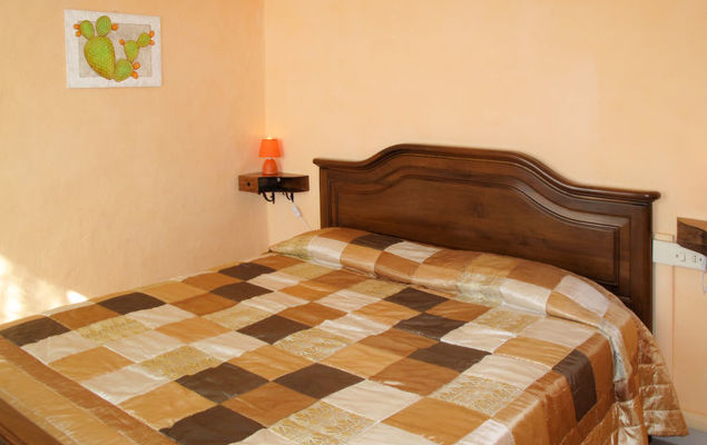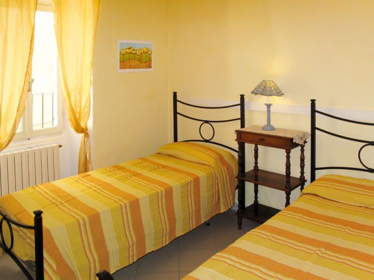 3-Zimmer-Wohnung, 1. Etage, ca. 70 m². Von der Hangseite ebenerdiger Eingang. Wohn-/Schlafraum mit Einzelbett (0,80 m breit), Essplatz für 2 Personen und Balkonausgang. Küche (4 Flammen, Backofen, Mikrowelle, Kühl-/Gefrierkombination, Kaffeemaschine, Wasserkocher, Toaster) mit Essplatz. Schlafzimmer mit franz. Bett (1,60 m breit). Zweibettzimmer (Betten 0,80 m breit). Dusche/Bidet/WC. CITRA: 008021-LT-0048