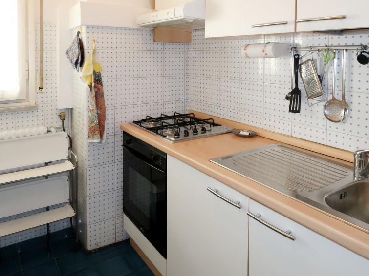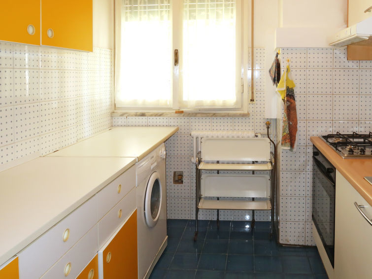 "Marina", 1-Zimmer-Wohnung 40 m2 im 7. Stock. Hell, zweckmässig und modern eingerichtet: Wohn-/Schlafzimmer mit Schiebetür mit 1 Doppeldiwanbett (140 cm), 1 Doppelbett (160 cm), Esstisch und TV. Ausgang zum Balkon. Küche (Backofen, 4 Flammen, Toaster, Wasserkocher, Tiefkühler). Dusche/WC. G-Heizung. Heizung nur verfügbar von 15.10. bis 30.04. Balkon. Balkonmöbel, Abstellkammer. Sehr schöne Sicht auf das Meer. Zur Verfügung: Waschmaschine, Kinderhochstuhl, Babybett. Internet (Wireless LAN, gratis). Parkplatz (überdacht). CITRA: 008039-LT-0117