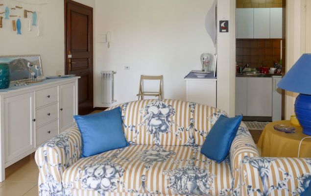 "Casa Marina", 2-Zimmer-Wohnung 60 m2, im Erdgeschoss. Sehr gemütlich eingerichtet: Wohn-/Esszimmer mit 1 Diwanbett (160 cm, Länge 200 cm), TV. Ausgang zum Garten. 1 Doppelzimmer. Kochnische (Backofen, 4 Flammen, Toaster, Wasserkocher). Bad/Bidet/WC. G-Heizung. Heizung nur verfügbar von 15.10. bis 30.04. Garten 50 m2, Rasen. Terrassenmöbel. Eingeschränkte Sicht auf das Meer. Zur Verfügung: Internet (Wireless LAN). CITRA 008065-LT-0224