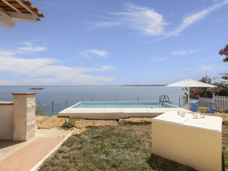 Doppelhaus "Norbert". Im Ort Punta Milocca, 11 km vom Zentrum von Siracusa, sonnige Lage, 20 m vom Meer, 100 m vom Strand. Zur Alleinbenutzung: Grundstück 600 m2 (eingezäunt), kleiner terrassierter Garten, Aufstellpool (3 x 5 m, 100 cm tief, saisonale Verfügbarkeit: 01.Apr. - 31.Okt.) mit Innentreppe. Dusche/WC im Poolbereich, Poolpflege durch den Besitzer/Gärtner. Zur Verfügung: Fahrräder (1). Parkplatz auf dem Grundstück. Supermarkt 10 km, Restaurant 4.5 km, Bar 1 km, Bushaltestelle 10 km, Sandstrand "Milocca" 100 m (klein), Felsstrand "Milocca" 80 m. Nahe gelegene Sehenswürdigkeiten: Noto 30 km, Marzamemi 49 km, Ispica 50 km, Isola delle correnti Punto Sud Sicilia 56 km. Bekannte Skigebiete sind gut erreichbar: Etna Sud Punto partenze Rifugio Sapienza 106 km. Wandergebiete: Riserva Naturale Laghetti del Cassibile 23 km, Riserva Faunistica di Vendicari 37 km. Bitte beachten: Fahrzeug empfohlen. Die Residenz wird durch elektrische Tore geschlossen. Das Leitungswasser hat keine Trinkwasserqualität.