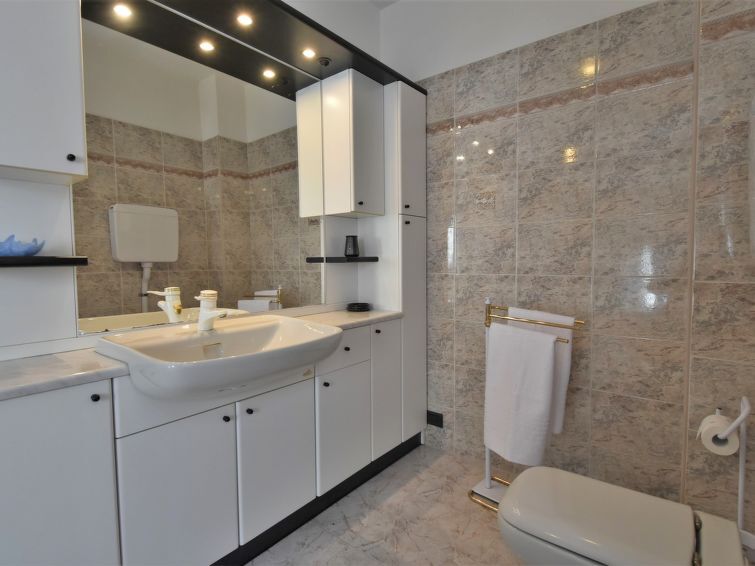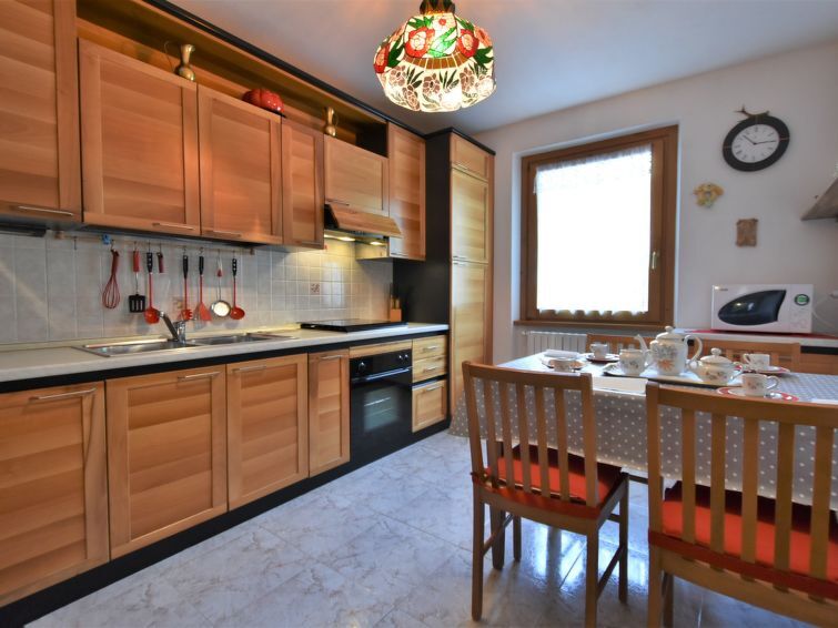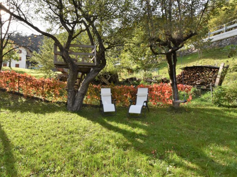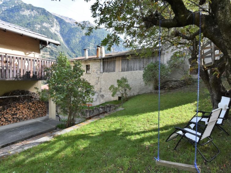 3-Zimmer-Wohnung 90 m2 im 1. Stock. Geräumig, zweckmässig und komfortabel eingerichtet: Wohn-/Esszimmer mit Schwedenofen (nur Deko), Esstisch und TV. Ausgang zum Garten. 1 grosses Doppelzimmer. 1 Zimmer mit 2 Betten. Küche (1 Kochplatte, Backofen, 3 Flammen, Toaster, Wasserkocher, Mikrowelle) mit Esstisch. Bad/Dusche/Bidet/WC. Heizung. Parkettboden. Garten. Terrassenmöbel, Gartengrill, Liegestühle (4). Sicht auf die Berge und den Garten. Zur Verfügung: Waschmaschine, Haartrockner. Internet (Wireless LAN, gratis). Bitte beachten: Nichtraucher-Haus. Eigener Eingang. IT014072C2SY265NGM