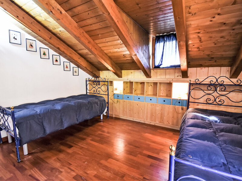 5-Zimmer-Doppelhaushälfte 150 m2 auf 3 Stockwerken. Geräumig, komfortabel und schön eingerichtet: Eingang mit sep. WC und TV (Flachbildschirm). Grosses Wohn-/Esszimmer. Wohnküche (Backofen, Geschirrspüler, Tiefkühler) mit Bar. Unteres Geschoss: 1 Zimmer mit 2 Betten. Obergeschoss: 1 abgeschrägtes Doppelzimmer mit Dusche/Bidet/WC. Ausgang zum Balkon. 1 abgeschrägtes Zimmer mit 2 Betten. Ausgang zum Balkon. 1 Zimmer mit 1 x 2 Etagenbetten. Ausgang zum Balkon. Dusche/Bidet/WC. Sehr schöne Sicht auf die Berge. Zur Verfügung: Waschmaschine. Internet (Wireless LAN, gratis). Parkplatz (2 Autos). Bitte beachten: Maximal 1 Haustier/Hund erlaubt. Feuerlöscher. IT022039B4MA9453LE