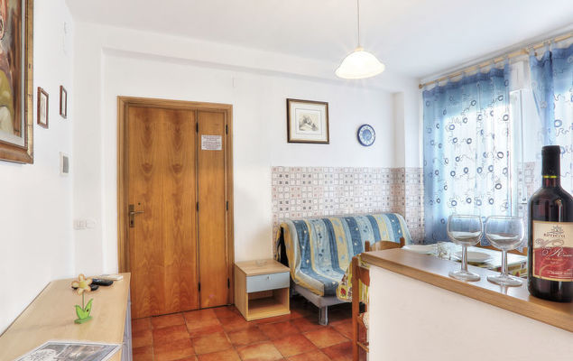 "Riviera 8", 2-Zimmer-Wohnung 33 m2 im 1. Stock. Zweckmässig eingerichtet: Wohn-/Schlafzimmer mit 1 Doppeldiwanbett (160 cm), Esstisch, Sat-TV und Klimaanlage. Ausgang zum Balkon. 1 Zimmer mit 1 franz. Bett (160 cm, Länge 190 cm). Ausgang zum Balkon. Offene Küche (4 Flammen). Dusche/WC. Heizung, Klimaanlage. Balkon. Balkonmöbel. Zur Verfügung: Babybett. Internet (Wireless LAN). 1 Haustier/Hund erlaubt.