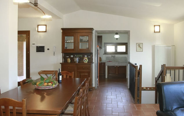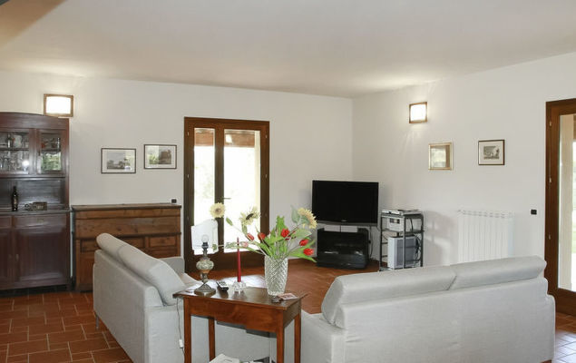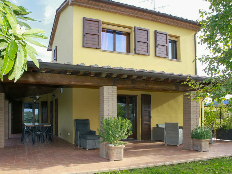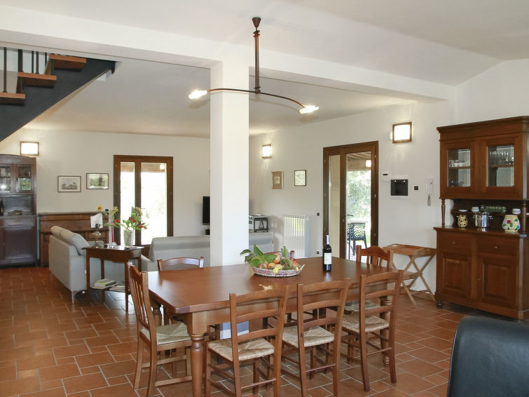 5-Zimmer-Haus 150 m2 auf 2 Stockwerken, im Erdgeschoss. Zweckmässig und geschmackvoll eingerichtet: Eingang. Wohnzimmer mit Sat-TV, Stereoanlage und DVD. Esszimmer. 1 Doppelzimmer. Küche (4 Kochplatten, Backofen, Geschirrspüler, Toaster, Wasserkocher, Mikrowelle, Tiefkühler). Dusche/Bidet/WC. Obergeschoss: 1 Doppelzimmer. 1 Zimmer mit 2 Betten. Dusche/Bidet/WC. Terrassenmöbel, Gartengrill. Panoramasicht auf die Landschaft. Zur Verfügung: Waschmaschine, Safe, Bügeleisen, Haartrockner. Internet (Wireless LAN, gratis).