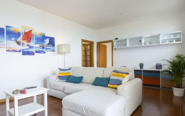 3-Zimmer-Wohnung 100 m2 im 1. Stock. Geräumig, schön und geschmackvoll eingerichtet: Eingang. Wohn-/Schlafzimmer mit 1 Doppeldiwanbett und Sat-TV (Flachbildschirm). Ausgang zur Terrasse. 1 Doppelzimmer mit Sat-TV (Flachbildschirm). Ausgang zum Balkon. 1 Zimmer mit 2 Betten. Ausgang zum Balkon. Küche (Backofen, Geschirrspüler, Gasherd, 4 Flammen, Toaster, Wasserkocher, Mikrowelle) mit Esstisch und Sat-TV (Flachbildschirm). Ausgang zur Veranda. Dusche/Bidet/WC. Heizung (extra). Südlage. Terrassenmöbel, Balkonmöbel. Sehr schöne Sicht auf das Meer. Zur Verfügung: Waschmaschine. Internet (Wireless LAN, gratis). Geeignet für Familien.