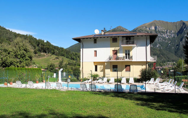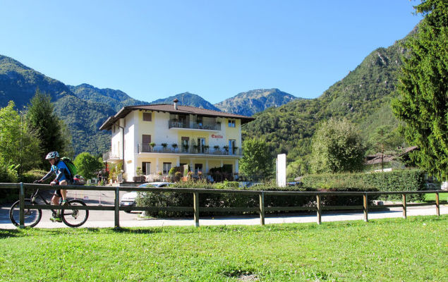 Residenz "Emilio-Bertolotti". 10 Wohnungen in der Residenz. Mietobjekt bestehend aus Haupt- und Nebengebäude, im Ortsteil Pian di Pur, 3 km vom Zentrum von Molina di Ledro, 14 km vom Zentrum von Riva del Garda, 54 km vom Zentrum von Trento, 150 m vom See. Zur Mitbenutzung: Grundstück, gepflegter Garten mit Rasen und Bäumen, Schwimmbad (12 x 6 m, saisonale Verfügbarkeit: 15.Mai.-15.Sep.). WC im Poolbereich, Aussendusche, Grill, Kinderspielplatz. Im Hause: Wireless LAN, Sauna (extra). Einstellraum für Fahrräder, Waschmaschine (zur Mitbenutzung, extra). Parkplatz auf dem Grundstück. Einkaufsgeschäft 3 km, Grasstrand "Lago di Ledro" 150 m. Badekappenpflicht. Bitte beachten: Die Garda Guest Card wird auf Anfrage kostenlos zur Verfügung gestellt.