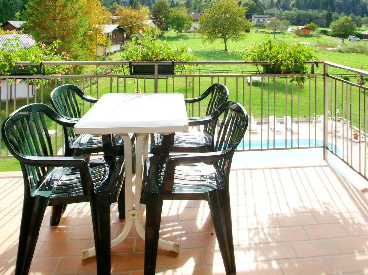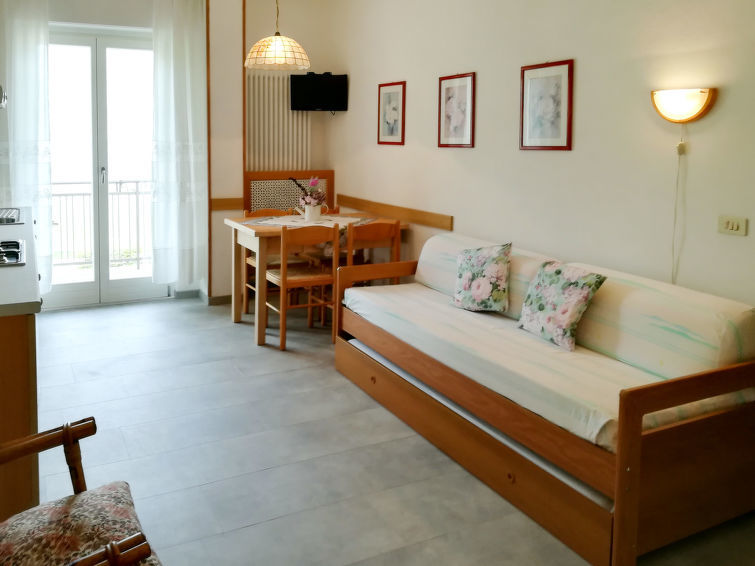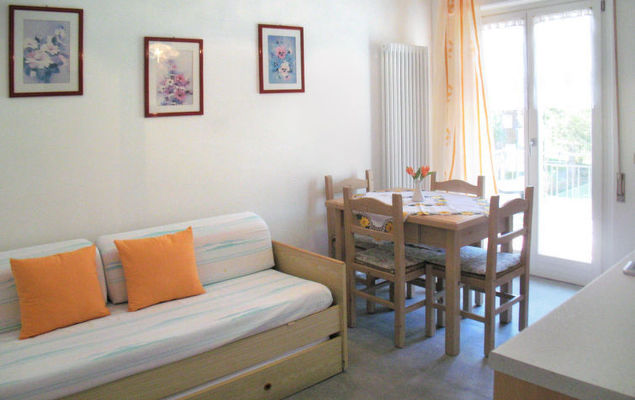 2-Zimmer-Wohnung 35 m2. Zweckmässig eingerichtet: Wohn-/Schlafzimmer mit 1 Diwanbett, 1 Ausziehbett, Esstisch und Sat-TV. Ausgang zum Balkon. 1 Zimmer mit 1 Doppelbett. Offene Küche (Geschirrspüler, 4 Flammen, Mikrowelle, elektrische Kaffeemaschine). Dusche/WC. G-Heizung. Balkon. Balkonmöbel. Zur Verfügung: Internet (Wireless LAN, gratis). Bitte beachten: Nichtraucher-Unterkunft. CIPAT:022229-AT-053665