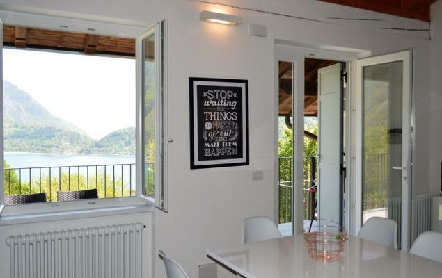 3-Zimmer-Wohnung 60 m2 auf 2 Stockwerken. Vollständig renoviert im Jahre 2018, komfortabel und modern eingerichtet: Wohn-/Esszimmer mit 1 Doppeldiwanbett und Sat-TV. Kochnische (4 Kochplatten, Backofen, Geschirrspüler, Wasserkocher, Mikrowelle, elektrische Kaffeemaschine). Obergeschoss: 1 Doppelzimmer. 1 Zimmer mit 2 Betten. Dusche/Bidet/WC. G-Heizung (extra). Grosser Balkon oder Garten. Balkonmöbel, Gartengrill. Panoramasicht auf den See und die Berge. Zur Verfügung: Waschmaschine. Internet (Wireless LAN, gratis). Bitte beachten: Maximal 3 Haustiere/Hunde erlaubt. Eigener Eingang. CIPAT:068022
