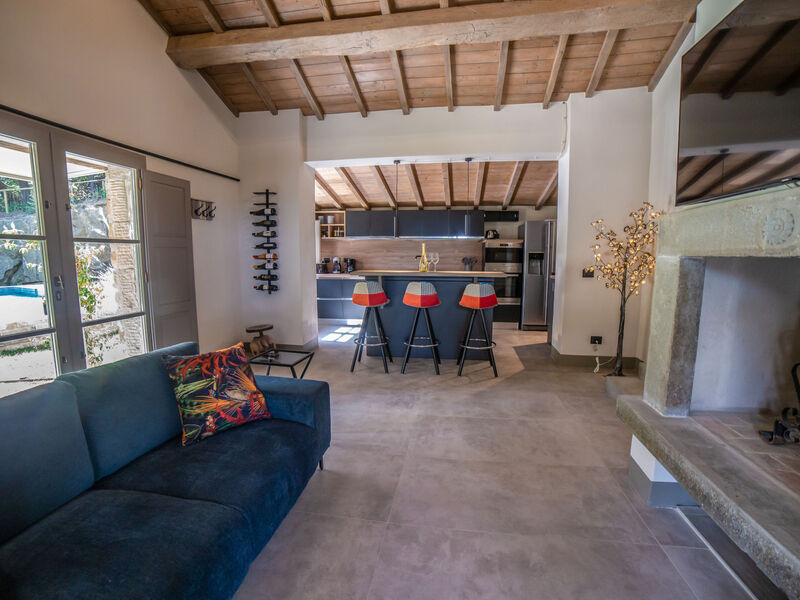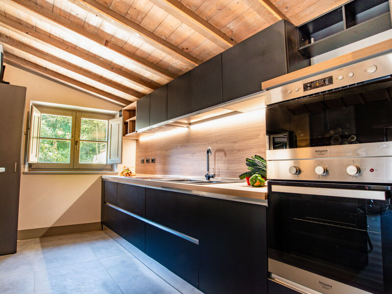 2-Zimmer-Chalet 70 m2. Modern und luxuriös eingerichtet: Wohnzimmer mit offenem Kamin, Essecke, Küchenblock und Sat-TV (Flachbildschirm). Ausgang zum Garten, zur Loggia. 1 Doppelzimmer. Kochnische (Backofen, Geschirrspüler, 4 Induktionskochplatten, Toaster, Wasserkocher, Mikrowelle, elektrische Kaffeemaschine). Dusche/Bidet/WC. E-Heizung, Klimaanlage. Eingeschränkte Sicht auf das Tal. Zur Verfügung: Waschmaschine, Haartrockner. Internet (WLAN). Maximal 1 Haustier/Hund erlaubt. IT054038C202032943