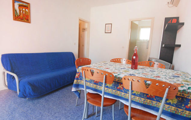 3-Zimmer-Wohnung 57 m2. Hell, einfach und komfortabel eingerichtet: Wohn-/Schlafzimmer mit 1 Doppeldiwanbett, Esstisch und TV. 1 Zimmer mit 1 Doppelbett. 1 Zimmer mit 2 Betten. Kleine Küche). Dusche/Bidet/WC. Klimaanlage, Warmluftheizung. 1 Haustier/Hund erlaubt.