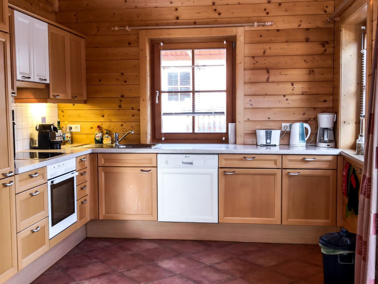 "Chalet Jupiter", 4-Zimmer-Chalet 100 m2 auf 2 Stockwerken. Objekt geeignet für 6 Erwachsene. Geschmackvoll und mit viel Holz eingerichtet: Wohn-/Esszimmer mit Essecke und Digital-TV. Ausgang zum Balkon. 2 Doppelzimmer. Offene Küche (Backofen, Geschirrspüler, 4 Glaskeramikplatten, Wasserkocher, Mikrowelle, elektrische Kaffeemaschine, Kapseln für die Kaffeemaschine (Nespresso) extra). Sep. WC. Unteres Geschoss: Eingang. 1 Doppelzimmer. Dusche/WC, Doppelwaschbecken. Fussbodenheizung. Holzdielenboden. Grosser Balkon, Terrasse teilweise überdacht. Balkonmöbel. Sehr schöne Sicht auf die Berge und die Landschaft. Zur Verfügung: Kinderhochstuhl, Babybett bis 2 Jahre. Internet (WLAN, gratis). Parkplatz (überdacht, 2 Autos). Bitte beachten: Nichtraucher-Unterkunft. 2 kleine Haustiere/Hunde erlaubt. Rauchmelder. AmazonFireTV und Netflix Zugang im Haus. Die Küchenausstattung umfasst eine Nespresso Maschine, Toaster und Wasserkocher.